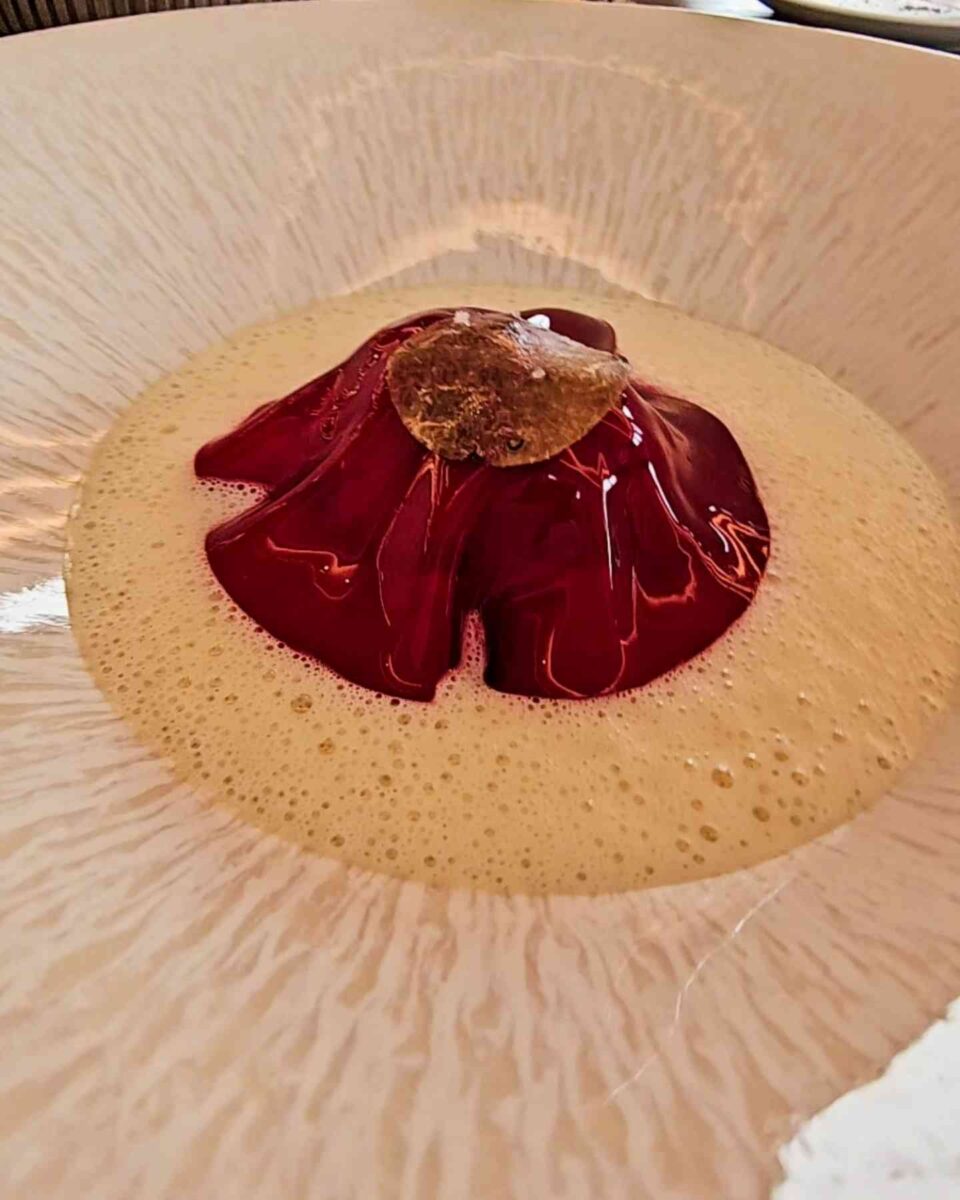 Maar het absolute hoogtepunt? La Turbot. Een boterzachte vis, begeleid door een beurre blanc die alles was wat een saus hoort te zijn. Glanzend, romig, subtiel zuur door een vleugje yuzu, en verrijkt met een beetje kaviaar. Dit gerecht was geen ster waard, dit was het universum op een bord. Als eten emoties losmaakt, dan was dit de “Liebe Pur”!