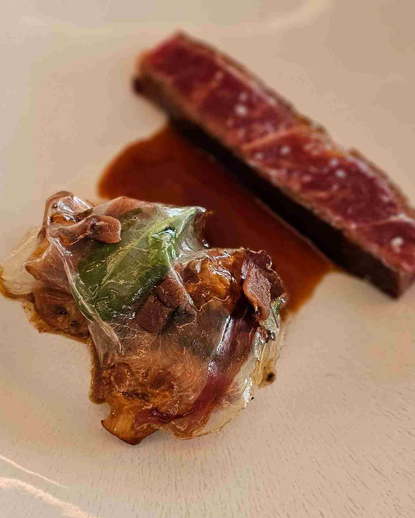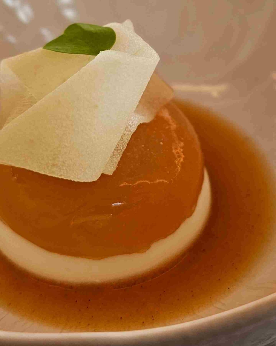 Daarna arriveert Le Boeuf. Een mooie runderlende met een diepe jus en een subtiele zoute toets van guanciale. Technisch perfect, maar na de finesse van de tarbot voelde het iets minder gedenkwaardig. Het was een moment van terug naar aarde, waar je jezelf eraan herinnert dat niet elk gerecht je hoeft te overweldigen.